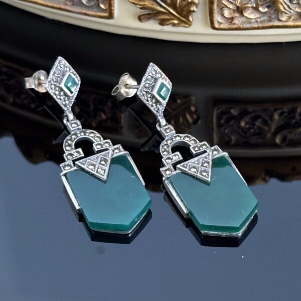 Srebrne kolczyki Art Deco z Szmaragdem