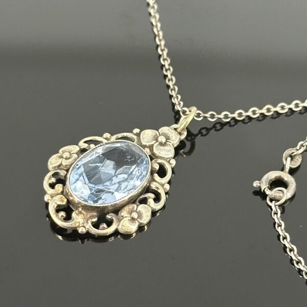 Oryginalny Srebrny naszyjnik z Akwamarynem – ok. 1890 roku.
