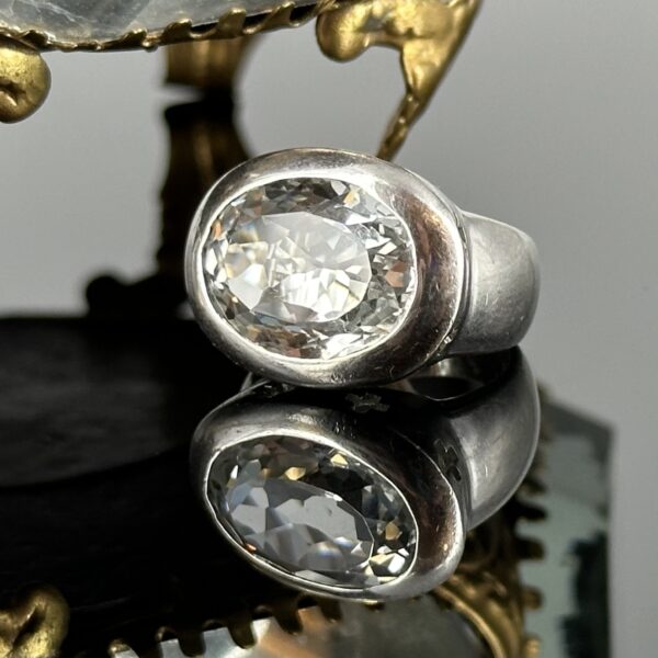 Ten wielki pierścionek został wykonany z srebra próby 925
