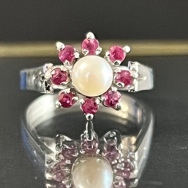 Srebrny pierścionek z Perłą i Rubinami