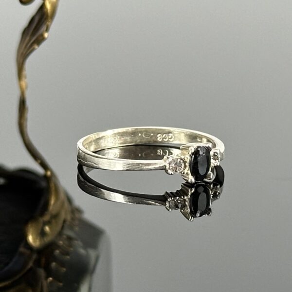 Srebrny pierścionek z Onyksem i Cyrkoniami