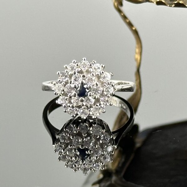 Srebrny pierścionek z Szafirem i Cyrkoniami