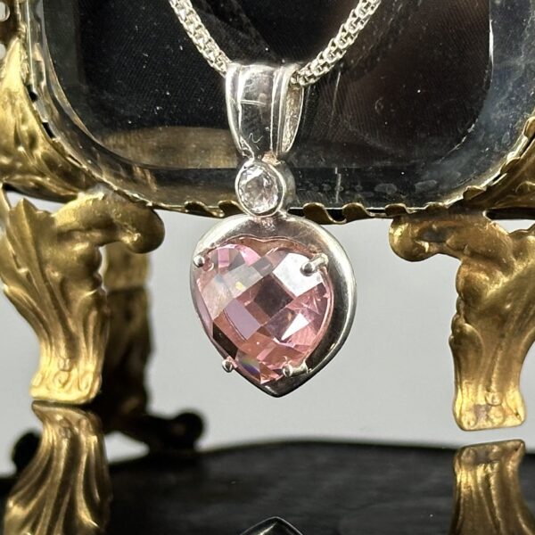 Srebrny naszyjnik z różowym kamieniem Swarovskiego i Cyrkonią